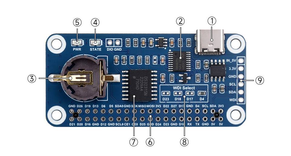 - Typ: Překrytí HAT RTC s vestavěným hlídacím zařízením