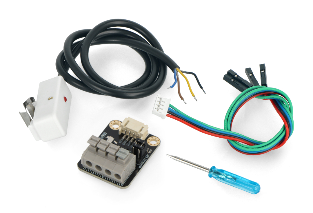Bezkontaktní senzor hladiny kapaliny, vyrobený společností DFRobot , je vybaven indikátorem stavu a nastavením citlivosti. Jeho hlavním použitím je detekce hladiny kapaliny ve všech typech nekovových trubek s vnějším průměrem až 10 mm . Zařízení umožňuje přenos informací o stavu senzoru v reálném čase. Sada obsahuje také 4pinový adaptér senzoru, který umožňuje přímý přenos signálu ze senzoru například do Arduina nebo jiného mikrokontroléru. Díky tomuto senzoru kapaliny a jeho širokému použití je možné detekovat kapaliny ve vodních dávkovačích, malých trubicích a perfuzních trubicích. Senzor hladiny kapaliny byl vyvinut na základě pokročilé technologie zpracování signálu s využitím efektivního systému. Měření senzoru není ovlivněno tloušťkou stěn nádoby, kontaminací ani přítomností kyselin a zásad.