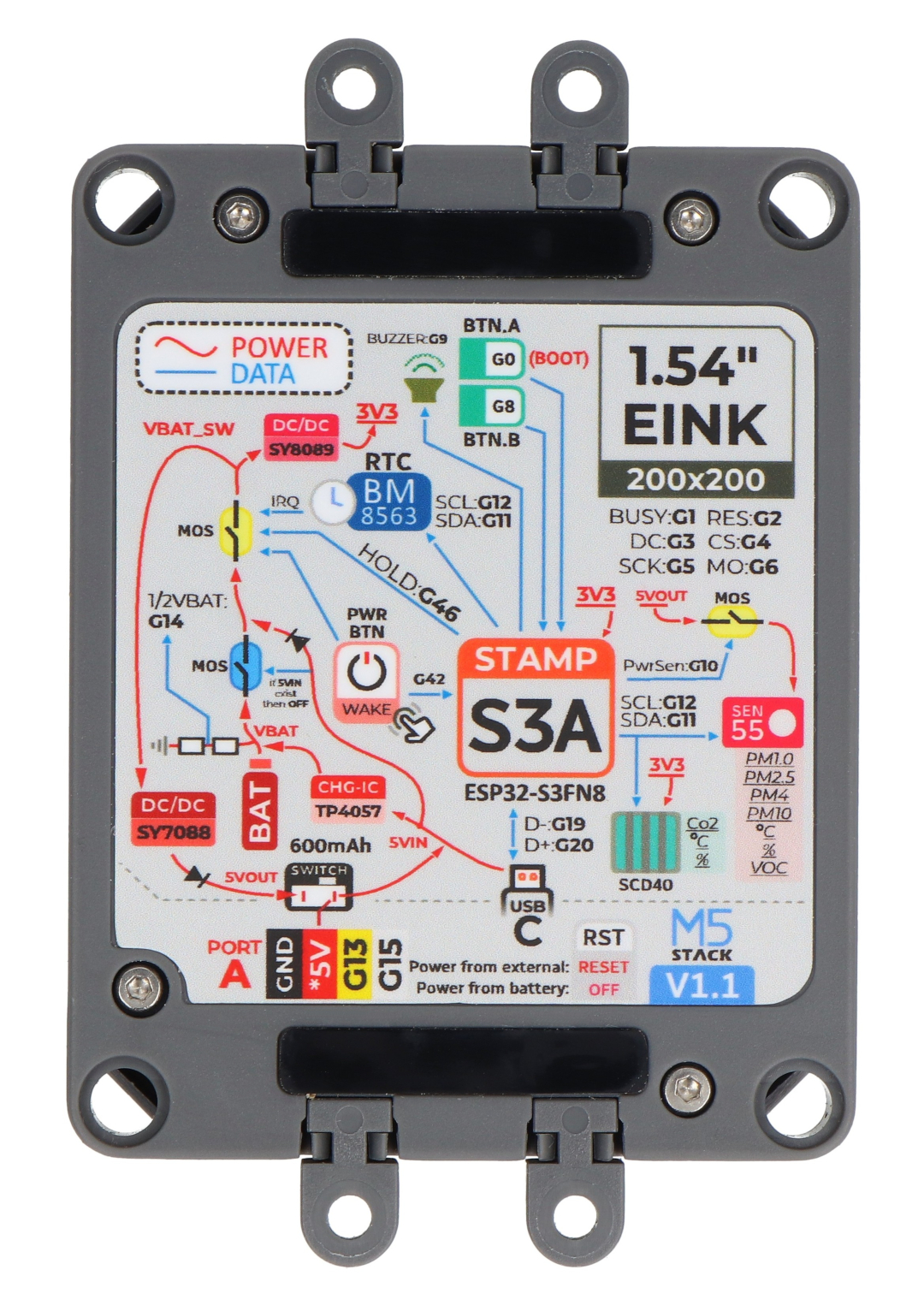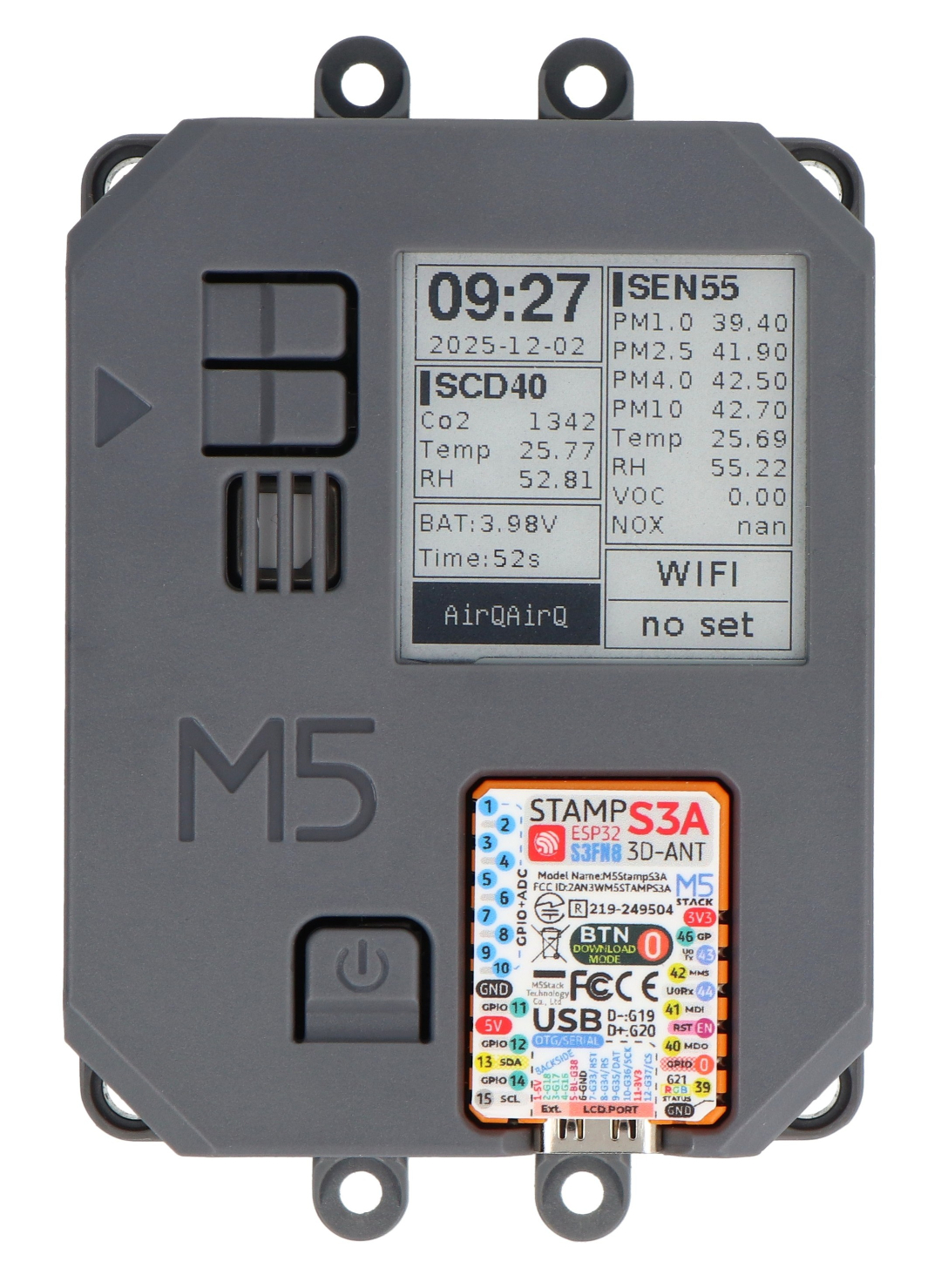 - 1x Sada pro měření kvality ovzduší - sada pro měření kvality ovzduší - M5StampS3 + SEN55 + vývojový modul SCD40 - M5Stack K131 V1.1