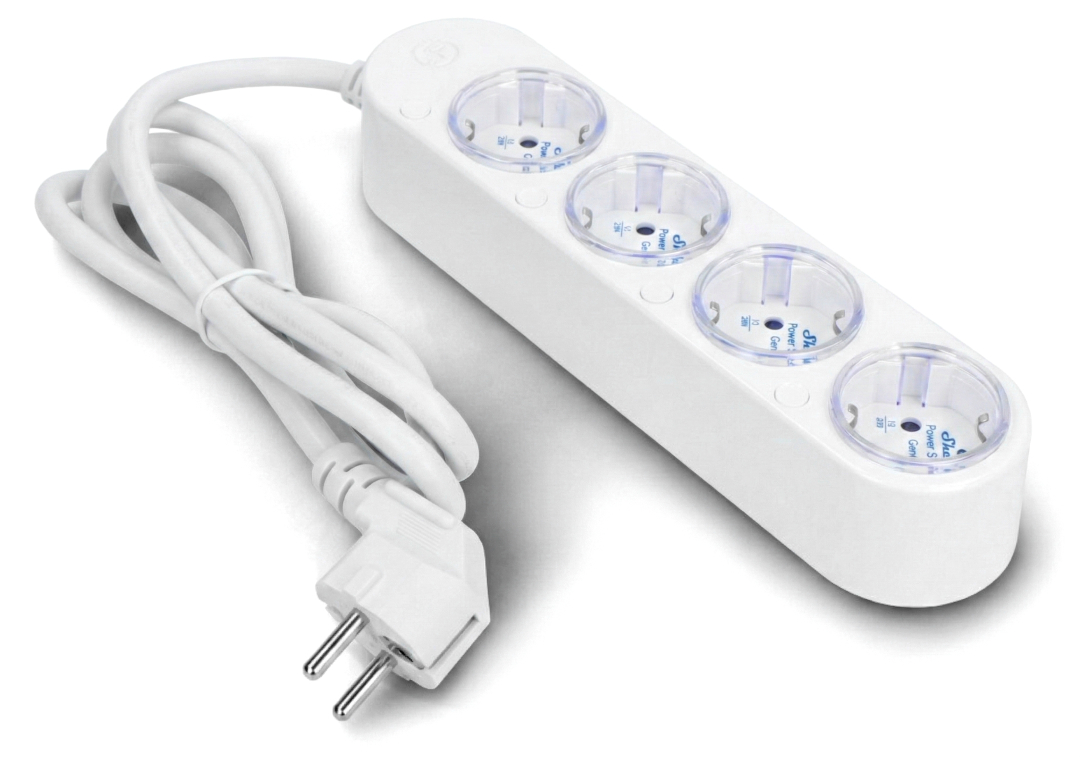 Shelly Power Strip 4 Gen4 je moderní prodlužovací kabel , který kombinuje funkčnost klasické zásuvky s pokročilou automatizací chytrých zásuvek . Čtyři jednotlivé zásuvky jsou vybaveny měřením energie v reálném čase , což umožňuje přesnou správu připojených zařízení a optimalizaci spotřeby energie. Shelly Power Strip 4 Gen4 nabízí bezdrátové připojení přes WiFi , Bluetooth a ZigBee a také podporu standardu Matter . Podporuje zařízení až do 3680 W (celkem 16 A pro čtyři zásuvky a 12 A na jednu zásuvku) a integruje se se systémy chytré domácnosti, jako jsou Apple HomeKit, Google Home a Amazon Alexa . Vícebarevné LED podsvícení informuje o stavu a aktivitě zásuvek, zatímco noční režim umožňuje nejen nastavení úrovně jasu, ale také použití prodlužovacího kabelu jako dalšího, decentního zdroje světla. To vše pro zajištění vysokého uživatelského komfortu a dobrého nočního odpočinku.