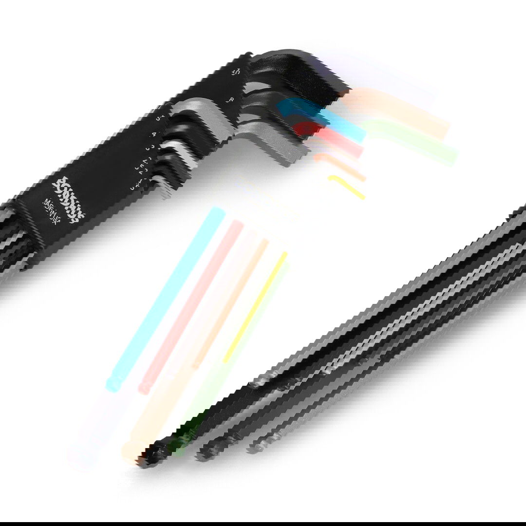 - 9 dlouhých imbusových klíčů s kuličkovým hrotem - umožňují práci pod úhlem a pohodlný přístup k těžko dostupným šroubům