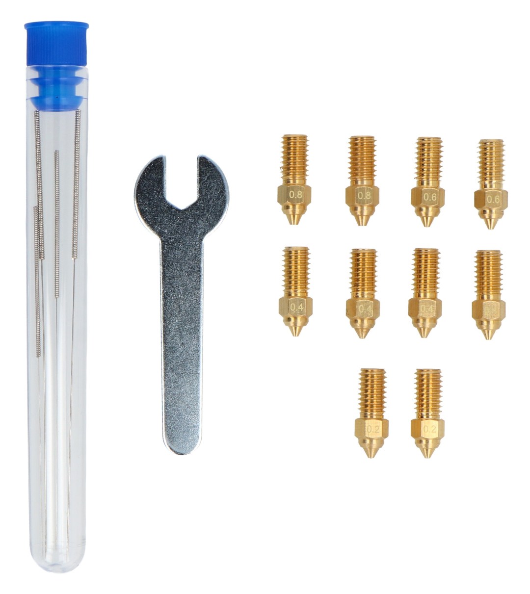 Popis produktu: Sada trysek 0,2 mm / 0,4 mm / 0,6 mm / 0,8 mm pro 3D tiskárny Elegoo Neptune 4 / 4 Pro - mosaz