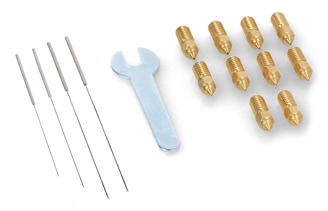 - Různé průměry trysek: 0,2 mm, 0,4 mm, 0,6 mm, 0,8 mm - od detailů až po vysokorychlostní tisk