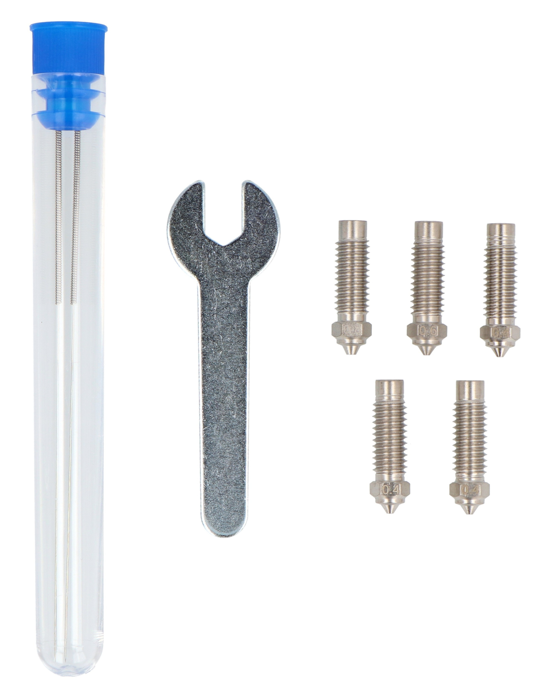 Sada 5 trysek z kalené oceli určených pro uživatele 3D tiskáren Elegoo Neptune 4 Plus a 4 Max , kteří požadují nejvyšší odolnost a kvalitu tisku. Sada obsahuje tři různé průměry – 3x 0,4 mm, 1x 0,6 mm a 1x 0,8 mm – což vám umožňuje vybrat si trysku pro váš konkrétní projekt, od detailních tisků až po rychlé prototypování. Kalená ocel poskytuje vysokou odolnost proti oděru, díky čemuž jsou tyto trysky ideální volbou pro filamenty s abrazivními přísadami (např. uhlíková vlákna, kov nebo dřevo).