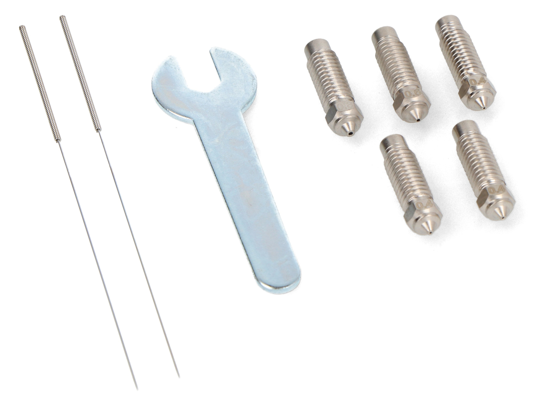 - Průměry trysek: 0,4 mm, 0,6 mm, 0,8 mm