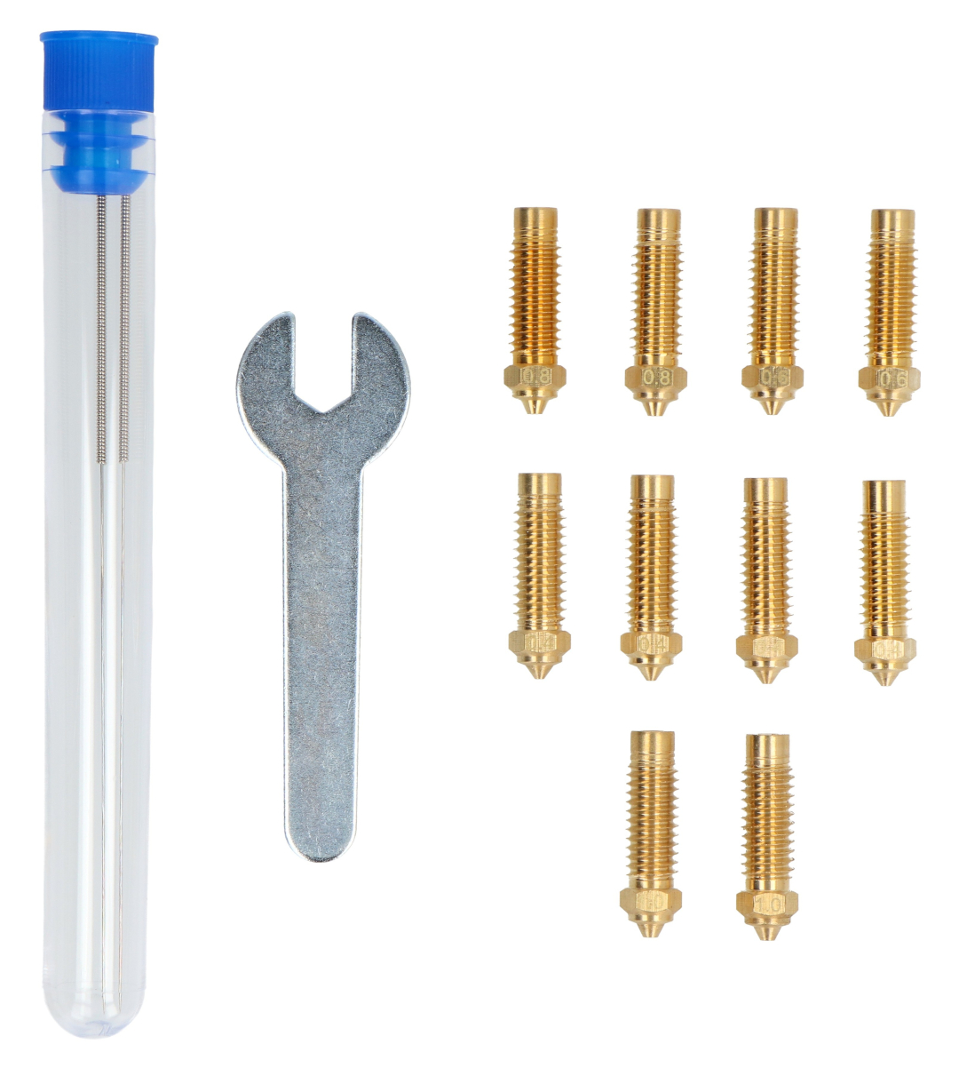 - Průměry trysek: 0,4 mm, 0,6 mm, 0,8 mm, 1 mm