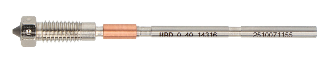 Kalená tryska Prusa je originální, továrně kalená tryska o průměru 0,4 mm určená pro 3D tiskárny Prusa – MK4, MK4S, XL, CORE One, CORE One+, MK3.9 a MK3.9S . Díky speciálnímu niklovému povlaku nabízí tryska zvýšenou mechanickou odolnost a vylepšené tepelné vlastnosti , což zajišťuje stabilní a rovnoměrný tok materiálu. Díky své odolnosti proti oděru je ideální pro tisk s technickými a abrazivními filamenty , jako jsou uhlíková nebo skleněná vlákna. Tryska může pracovat při teplotách až 300 °C , takže je kompatibilní s širokou škálou materiálů.