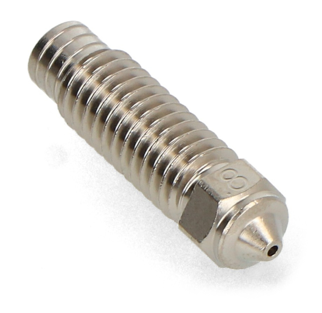 Tryska Micro Swiss o průměru 0,8 mm je vynikající volbou pro ty, kteří potřebují přesný a zároveň rychlejší tisk. Je ideální pro technické návrhy, velké funkční modely a projekty vyžadující větší komponenty. Tryska dobře funguje s materiály náchylnými k oděru, jako jsou uhlíkové a kompozitní filamenty. Povrchová úprava TwinClad XT zajišťuje dlouhou životnost a vysokou kvalitu tisku v celém rozsahu teplot a rychlostí tisku.