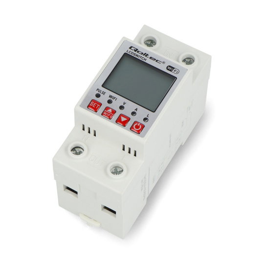 - Elektronické relé Qoltec WiFi na DIN lištu