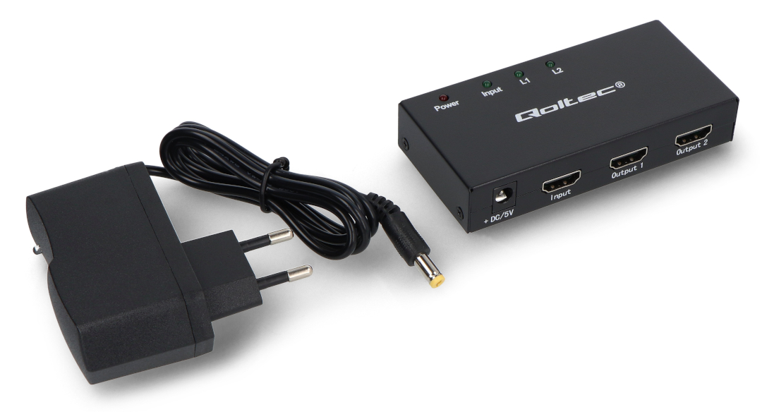 Popis produktu: Aktivní rozbočovač 2x HDMI 4K / 2K 3.4Gb/s - Qoltec 51796