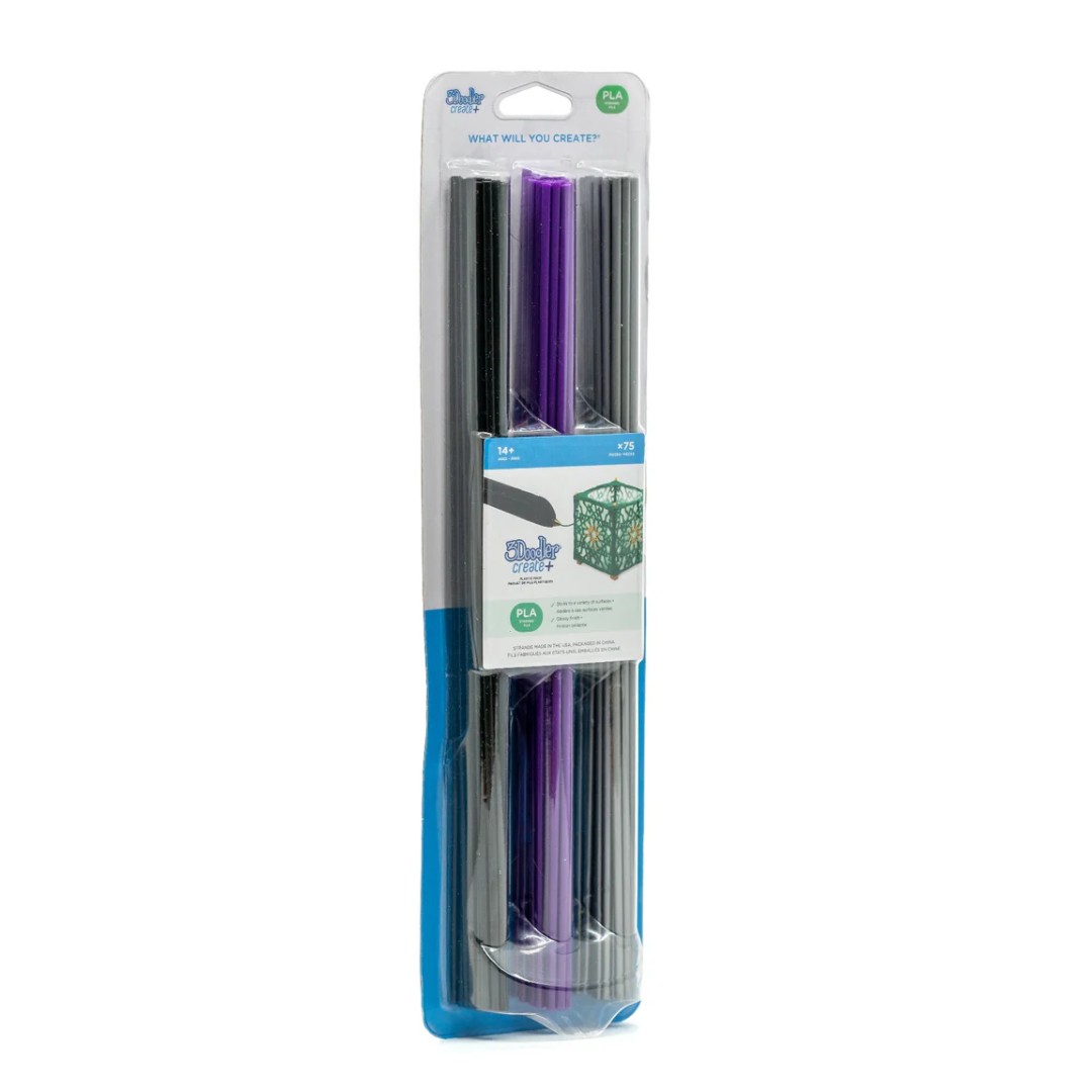 Filament 3Doodler Create+ je sada 75 vysoce kvalitních PLA cartridge o průměru 3 mm , kompatibilních s oblíbenými pery 3Doodler Create, PRO, 2.0 a 1.0 . Sada obsahuje tři různé barvy - černou, fialovou a šedou. PLA materiál je šetrný k životnímu prostředí a díky svému lesku a tuhosti se skvěle hodí do uměleckých projektů. Je ideální volbou pro začátečníky i pokročilé uživatele 3D per .