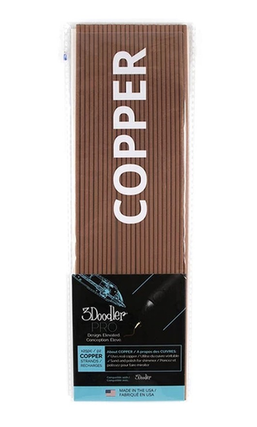 Filament 3Doodler PRO Copper je vysoce kvalitní materiál pro ruční 3D tisk, vytvořený speciálně pro uživatele 3D per 3Doodler. Vložky obsahují měděný prášek smíchaný se základním materiálem , což umožňuje vytvářet modely a detaily s profesionálním kovovým povrchem. Vlákna mají průměr 3 mm , což zajišťuje bezproblémový provoz zařízení. Pero taví filament při teplotě přibližně 180 °C a rychlost podávání by měla být mezi 3 a 5, což zaručuje přesnou a stabilní tvorbu. Kompatibilita s pery 3Doodler PRO a Create+ zajišťuje nejlepší výsledky a vysoce kvalitní tisky.