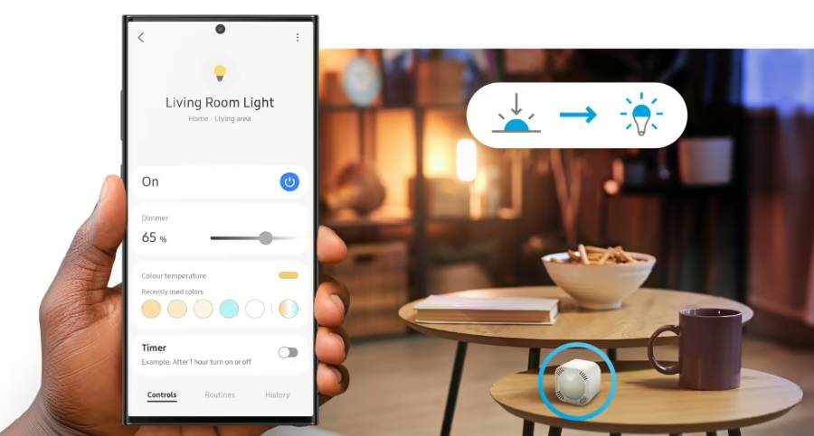 Vestavěný světelný senzor měří intenzitu světla od 0 luxů do 30 000 luxů s přesností ±3 % . Umožňuje inteligentní ovládání žaluzií, rolet a osvětlení. Systém dokáže automaticky upravovat jas lampy na základě úrovně denního světla, čímž zvyšuje komfort a energetickou účinnost.