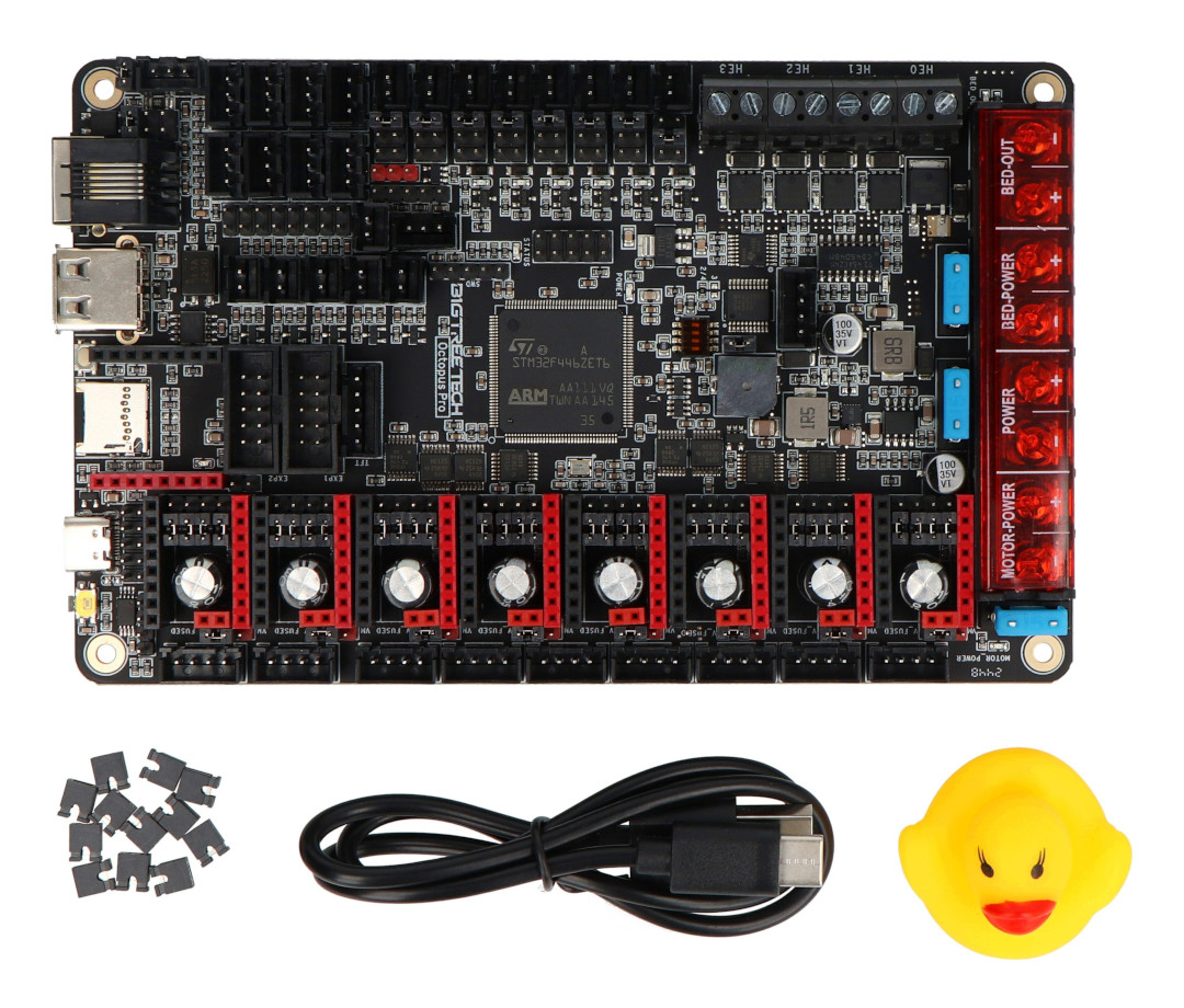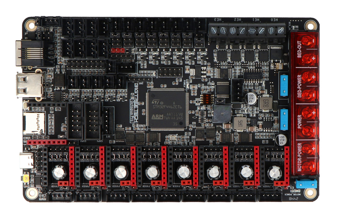 Vysoce výkonná základní deska Bigtreetech Octopus Pro v1.0.1 založená na 32bitovém mikrokontroléru ARM Cortex M4 STM32F446ZET6 / STM32F429ZGT6, taktovaném na 168 MHz a s 1 MB flash paměti. Octopus Pro podporuje až 8 ovladačů krokových motorů, takže dokáže ovládat 8 různých os. Logické napětí desky Bigtreetech Octopus Pro v1.0 je 5V. Podporuje open-source software, jako jsou Marlin, Klipper, Raspberry Pi a Octoprint. Deska je mimo jiné vybavena také rozhraními WiFi a BL-Touch.