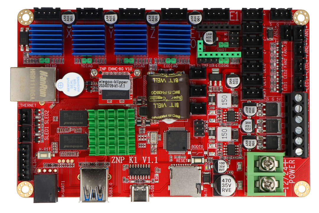 Tato originální základní deska Elegoo je navržena speciálně pro 3D tiskárny Elegoo Neptune 4 a 4 Pro . Integrovaný čtyřjádrový 64bitový procesor ARM s taktem 1,5 GHz zajišťuje vysoký výkon a stabilitu. Deska má 8 GB ROM a předinstalovaný firmware Klipper , což umožňuje tisknout rychlostí až 500 mm/s a zrychlení až 12 000 mm/s². Podporuje pokročilé funkce, jako je tvarování vstupu, posun tlaku a automatická kompenzace rezonance díky vibračním senzorům na osách X a Y. Jedná se o originální náhradní díl pro tiskárny Neptune 4 a 4 Pro, který zajišťuje plnou kompatibilitu a spolehlivost.