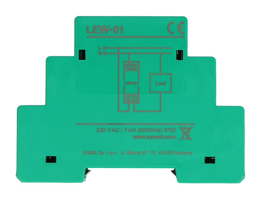 Přístroj LEW-01 je určen k instalaci na standardní DIN lištu (TH35) . Připojení se provádí přímo – fázový (L) a nulový (N) vodič se připojují k příslušným svorkám modulu a měřicí vodič (L') poskytuje odečet proudu. Přístroj LEW-01 by měl být používán pouze v obvodech chráněných jističem s maximálním proudem 16 A. Z bezpečnostních důvodů by instalaci měl provádět kvalifikovaný elektrikář s certifikací SEP.
