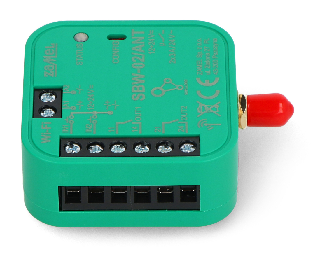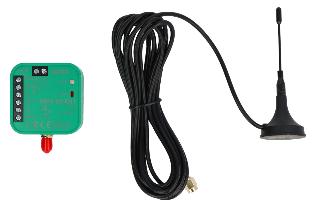 Popis produktu: Zamel Supla SBW-02/ANT - 2kanálový obousměrný WiFi ovladač brány 12V/24V s externí anténou - aplikace pro Android/iOS