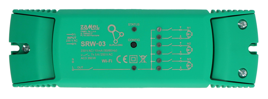Řídicí jednotka rolet SRW-03 od společnosti Zamel je pokročilé řešení pro chytrou domácnost, které umožňuje plnou automatizaci ovládání rolet. Díky WiFi připojení 2,4 GHz a integraci s cloudem Supla získají uživatelé vzdálený přístup k ovládání rolet – otevírání, zavírání a monitorování polohy. Další výhodou je možnost ovládat druhý okruh , například osvětlení nebo jiné zařízení s napětím 230 V AC . Zařízení funguje s bezplatnou mobilní aplikací a nabízí časové plány a automatický provoz bez nutnosti přesměrování portů na routeru.