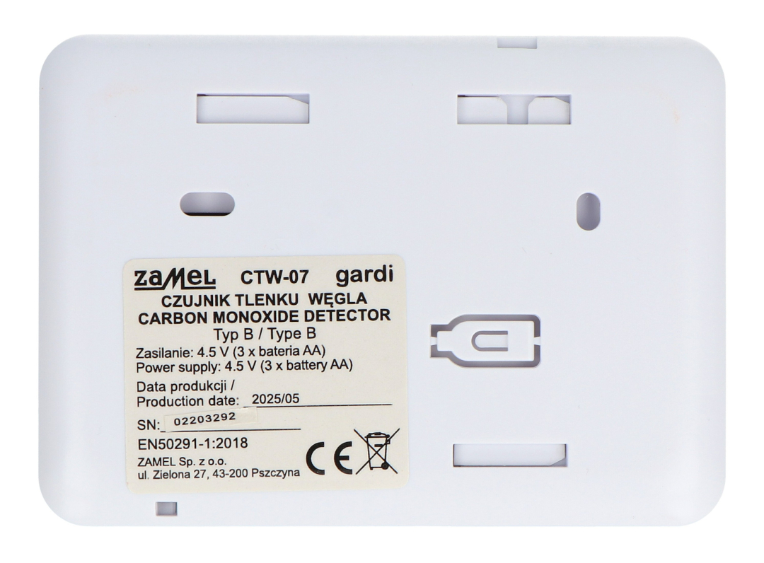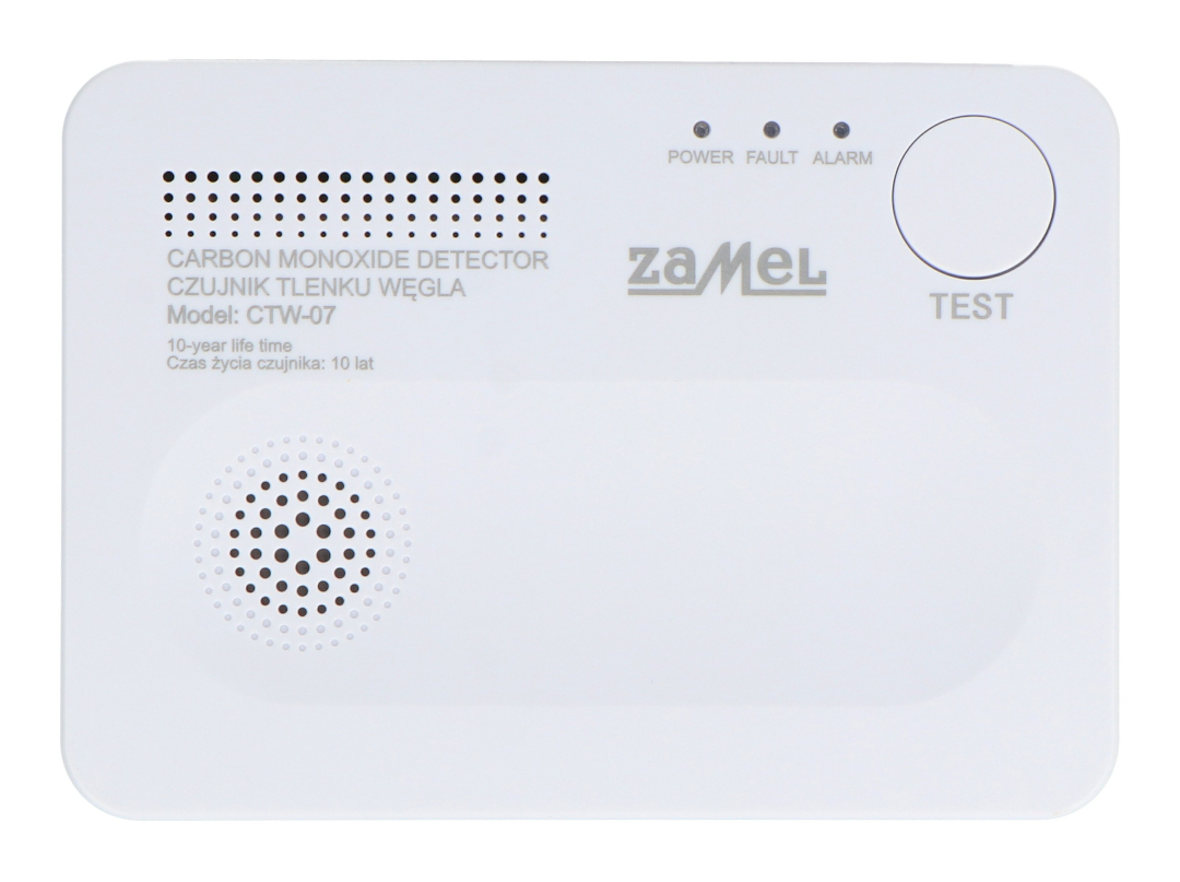 Detektor oxidu uhelnatého CTW-07 od společnosti Zamel je zařízení určené k detekci přítomnosti oxidu uhelnatého ve vzduchu . Díky elektrochemickému senzoru s dlouhou životností a systému autodiagnostiky účinně varuje před nebezpečnými koncentracemi oxidu uhelnatého . Detektor je napájen z baterie , což umožňuje rychlou instalaci kdekoli. Jeho zvukový (90 dB) a vizuální alarm účinně informují o detekci hrozby. Shoda s normou PN-EN50291-1:2018 zajišťuje naprostou bezpečnost.