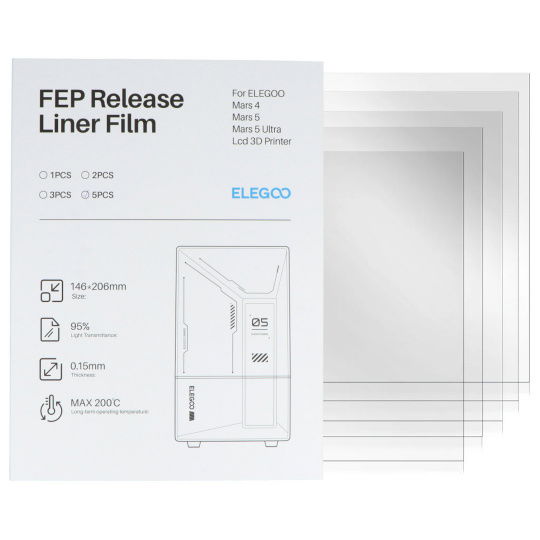 Popis produktu: FEP fólie pro tiskárny Elegoo Mars 4 / 5 / 5 Ultra 3D - 206 x 146 mm - 5 ks.