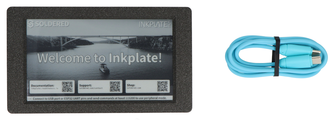 - 1x Inkplate 5 Gen2 s pouzdrem a baterií - 5,2'' displej pro elektronický papír 1280 x 720 px - ESP32 - kompatibilní s Arduino - pájený 333336